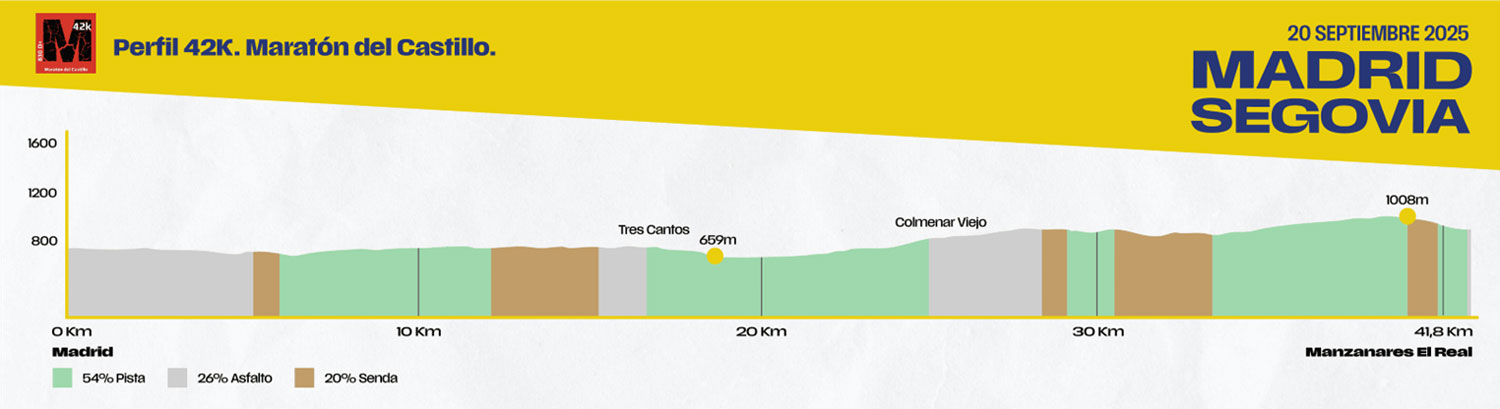 Superficie: 54% Pista de tierra – 20% Sendero – 26% Asfalto